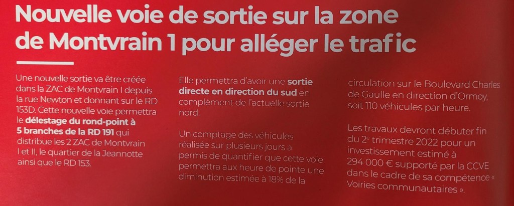 Même si on comprend l’intérêt de diminuer le trafic sur la RD 191, investir 294 000 € pour 110 voitures par heure (= 1,8 par minute) paraît ahurissant. Peut-être vaudrait-il mieux arrêter de construire sans arrêt sur Mennecy et demander aux promoteurs de financer ces travaux!