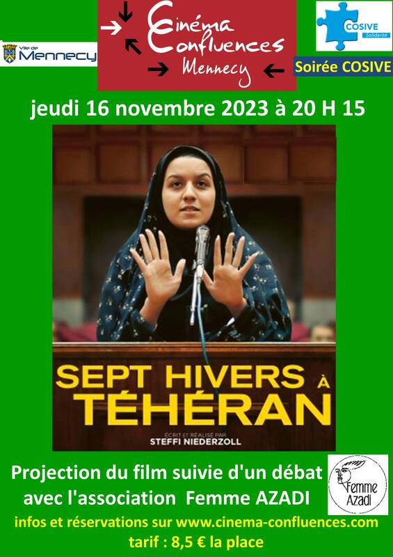 le COSIVE organise une soirée le 16 novembre prochain au cinéma de Mennecy. Il projettera le film « 7 hivers à Téhéran » qui sera suivi d’un débat animé par une représentant de « Femme AZADI »( azadi veut dire liberté en farci) qui est une association créée par des femmes franco-iraniennes après les évènements de septembre 2022 en Iran et qui a pour objet de sensibiliser l’opinion publique française, à la condition des femmes et du peuple iranien en lutte.