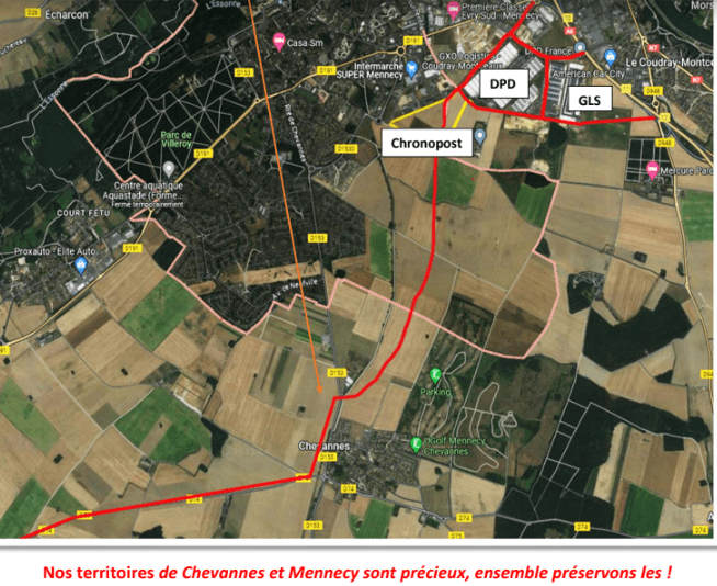 Le projet de la desserte Val d’Essonne permettra un trafic de 15 000 véhicules par jour ou plus… Les plateformes DPD (l’activité démarre) et GLS sont déjà construites mais pas encore en activité pour GLS (114 quais de chargement!).