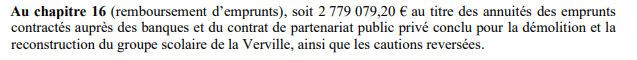 Concernant les 2 779 079€ de remboursement d’emprunt, il s’agit du réalisé de l’année 2023, qui figure donc au CA et au compte de gestion du trésorier ; les 2 8890 000€, c’est le prévisionnel 2024, qui figure au budget primitif !