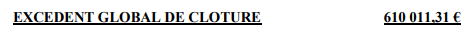 L’excédent global de clôture de l’exercice 2023 est bien de 610 011€